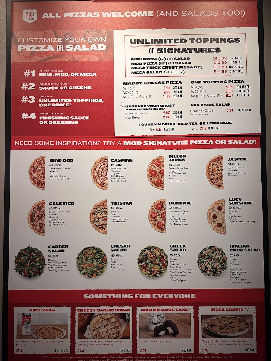 Kiddos are also well-served with a simple mini pizza meal, while a variety of beverages, including housemade iced teas and classic sodas, refresh the palate. Customer praise highlights the fast service, friendly staff, and warm atmosphere, making MOD Pizza not just a meal, but a welcoming dining experience. It’s a perfect spot for pizza lovers craving quality, customization, and great value all at once.